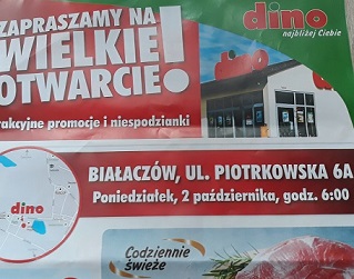 Zasypujecie mnie pytaniami na temat terminu otwarcia w Białaczowie marketu ,,Dino\”.