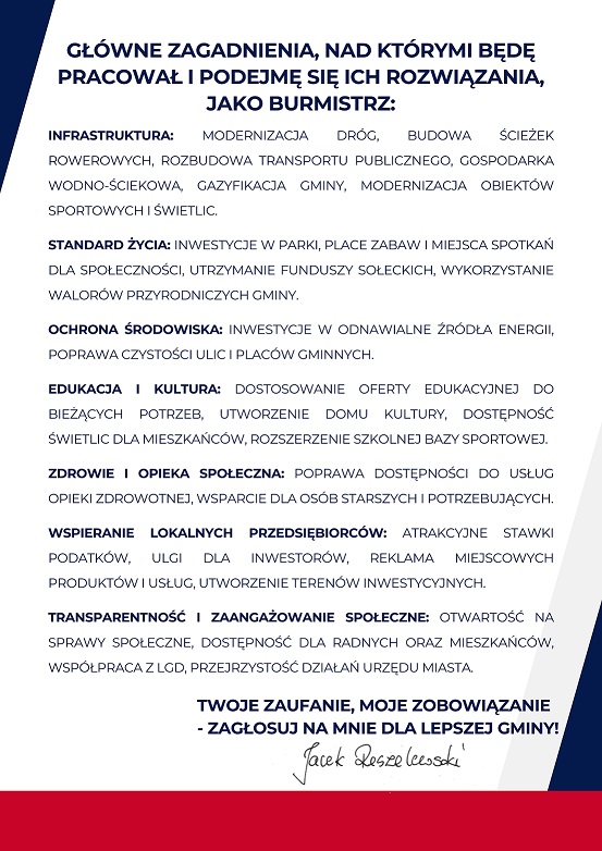 Kandydatów, oraz ich programy wyborcze, przedstawiamy według daty przysłania do redakcji swoich materiałów.