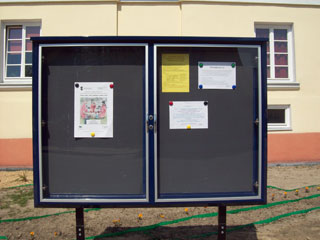 Na powoli zmieniającym się skwerze stowarzyszenia pojawiła się tablica informacyjna Urzędu Gminy i naszej organizacji. Dzięki temu na co dzień będzie można znaleźć tam informacje ważne dla mieszkańców.