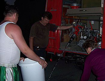 Urząd Gminy rozpoczął akcję rozdzielania wody pitnej i tej przeznaczonej dla celów gospodarczych. Pitną wydają sołtysi, dla celów gospodarczych strażacy z OSP. Dzienny przydział wody na rodzinę miał wynosić 10 l (dwie butle po 5 l) Z tą normą było różnie. W jednej z objętych kryzysem miejscowości zauważyliśmy jak mieszkańcy wynoszą od sołtysa po pięć, sześć butelki… Niektórzy więc mieli nadmiar, dla innych mogło zabraknąć – Woda będzie dostarczana regularnie, nie trzeba robić zapasów. Wystarczy jej dla każdego – zapewnia wójt gminy Jan Jóźwik.