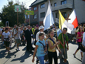 Po mszy przed kościołem były tłumy wiernych. Jedni z nich za chwilę mieli wyruszyć w 130–kilometrową trasę, inni przyszli by ich pożegnać i życzyć im szczęśliwej drogi. Ale także po to, by popatrzeć na uśmiechnięte twarze pątników i posłuchać radosnych pielgrzymkowych piosenek.