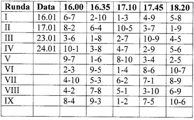 Terminarz rozgrywek.