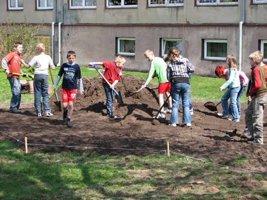 Współpraca z rodzicami w zakresie działań proekologicznych ,przybiera różne formy. W ostatnich dniach rodzice, uczniowie i nauczyciele pracowali przy zagospodarowaniu terenu zielonego przed budynkiem szkolnym. Przygotowano odpowiednie podłoże i posadzono krzewy ozdobne.
