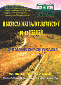 Stowarzyszenie Promocji i Rozwoju Gminy Białaczów w dniach 19 -22 sierpień (4 dni) organizuje II Bieszczadzki Rajd Turystyczny. Koszt imprezy 350 PLN dla członków SPiRGB i 370 PLN dla pozostałych. W cenie wliczone są: transport, 3 noclegi 3 śniadania 3 obiadokolacje ,ubezpieczenie. Liczba uczestników jest ograniczona. (15 osób). O zakwalifikowaniu do listy uczestników decyduje kolejność zgłoszeń. Szczegółowe informację na temat imprezy można uzyskać w Gminnej Bibliotece Publicznej. Tam też można się zapisać na listę uczestników, lub pod nr tel. 603571324.