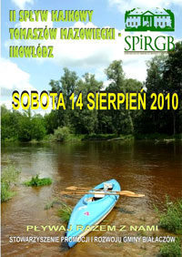 Stowarzyszenie Promocji i Rozwoju Gminy Białaczów zaprasza w dniu 14 sierpnia 2010 roku (sobota) na II Spływ kajakowy po Pilicy na trasie Tomaszów Mazowiecki – Inowłódz. Koszt imprezy 90 PLN dla członków SPiRGB i 97 PLN dla pozostałych. W cenie wliczone są: transport z Białaczowa na miejsce startu i powrót z Inowłodza do Białaczowa, wypożyczenie kajaka, ubezpieczenie posiłek na lini mety. Liczba uczestników jest ograniczona. (20 osób). O zakwalifikowaniu do listy uczestników decyduje kolejność zgłoszeń. Szczegółowe informację na temat imprezy można uzyskać w Gminnej Bibliotece Publicznej. Tam też można się zapisać na listę uczestników, lub pod nr tel. 603571324.