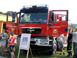 Po przywitaniu wszystkich gości , a byli wśród nich : W-ce Marszałek Sejmiku Województwa Łódzkiego Artur Bagiński, W-ce Prezes Zarządu Wojewódzkiej OSP Tadeusz Cisowski, Poseł Robert Telus , przedstawiciele władz powiatu i Urzędu Gminy Białaczów, nastąpiło uroczyste przekazanie wozu strażackiego MAN dla OSP Petrykozy , który został poświęcony przez kapelana – Proboszcza parafii A. Gulę .