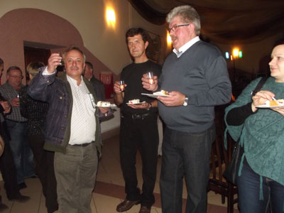 W sobotni wieczór dnia 3 grudnia 2011 roku w świetlicy w Białaczowie odbyło się spotkanie towarzysko-wspomnieniowe z okazji 35 – lecia zespołu ,,Nautilus,, Na uroczystość przybyli prawie wszyscy byli i aktualni członkowie grupy muzycznej, oraz członkowie dawnego kabaretu ,,Kontrast,, oraz sympatycy zespołu muzycznego. Uroczystość otworzył jeden z założycieli ,,Nautilusa,, Zbigniew Szpoton, który na początek zaprezentował film z archiwalnych materiałów zespołu a następnie przedstawił genezę narodzin zespołu. Stwierdził na wstępie iż powstanie zespołu związane było z aktywnością życia kulturalnego , które skupiało się wokół Gminnego Ośrodka Kultury. Przypomniał że autorem nazwy zespołu był w roku 1976 Piotr Kolczyński. Po wprowadzeniu, zaproszono wszystkich uczestników do spełnienia toastu za 35 lat trwania w muzyce. Na uroczystość przygotowano tez wspaniały, wielki, smaczny tort z napisem ,,35 lat zespołu Nautilus,, Po konsumpcji ,pierwsi członkowie zespołu a więc Krzysztof Jaroszyński (perkusja, vocal), Przemysław Nowak(instr. klawiszowe), Zbigniew Szpoton (gitara,vocal)i Bogdan Raczyński(gitara bas, vocal), który zastąpił nieobecnego Piotra Reszelewskiego (git. bas) wykonali dwa utwory sztandarowe z ówczesnego repertuaru tj. ,,Tak mówił pradziadek,, i ,, Moviestar,,. Przy okazji wykonania tych utworów, Z Szpoton przypomniał iż w roku 1977 na przeglądzie zespołów muzycznych w Sulejowie, zespół Nautilus, w tym składzie zajął drugie miejsce. Następnie głos zabrał Dariusz Raczyński, prezentując swoją wspaniale prowadzoną kronikę wspomnieniowa wraz ze zdjęciami z jego pierwszych kroków muzycznych i początkiem jego udziału w zespole ,,Nautilus,,. Wspomniał o kolegach którzy w latach 1977-1980 współpracowali z zespołem. A byli to: Andrzej Dworak, Bogdan Białecki , Zbigniew Paduszyński, Kazimierz Pluta i Tadeusz Wojewoda. Ten ostatni z racji osobistych powodów nie mógł przyjechać na spotkanie ale przysłał nagranie video z pozdrowieniami. Przyszła kolej na prezentacje muzyczne z tamtego okresu zespołu. Zespół w składzie Kazimierz Pluta (git.bas, vocal, Bogdan Białecki (perkusja) Dariusz Raczyński (gita, vocal), Ryszard Raczyński (git solowa) wykonał trzy utwory w tym dwie kompozycje zespołu. W końcu przyszedł czas na zaprezentowanie składu zespołu, który po dziś dzień funkcjonuje. Bogdan Raczyński, Krzysztof Jaroszynski, Dariusz Raczyński, Henryk Białas (instr. klawiszowe) i Katarzyna Zielińska (vocal) wykonali trzy utwory. Ostatni utwór stanowił pożegnalny akcent z odbiorcami tego fajnego wydarzenia. Wszyscy obecni na tej imprezie członkowie zespołu ,,Nautilus,, stanęli do pamiątkowego zdjęcia. Po ponad półtoragodzinnym programie (tak naprawdę bez reżyserii) Zbigniew Szpoton podziękował tym wszystkim którzy przyczynili się do zorganizowania tego wspaniałego wydarzenia. Podziękował wszystkim przybyłym i wyraził pogląd że benefis ,,Nautilusa,, to było jedno z tych wydarzeń, które można zaliczyć do bardzo udanych i którego prezentacją mógłby się szczycić nie jeden producent przedsięwzięć artystycznych. Po części artystycznej, obecni członkowie zespołu wraz z rodzinami wzięli udział w uroczystej kolacji. Dalej już bez udziału publiczności wspominano i opowiadano anegdoty z życia ,,Nautilusa,, Do zobaczenia za……………