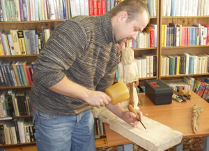 Opowiadając o swoim hobby młodzież miała okazję podziwiać prace Pana Dominika, jak również zapoznać się z „warsztatem” i narzędziami rzeźbiarskimi.